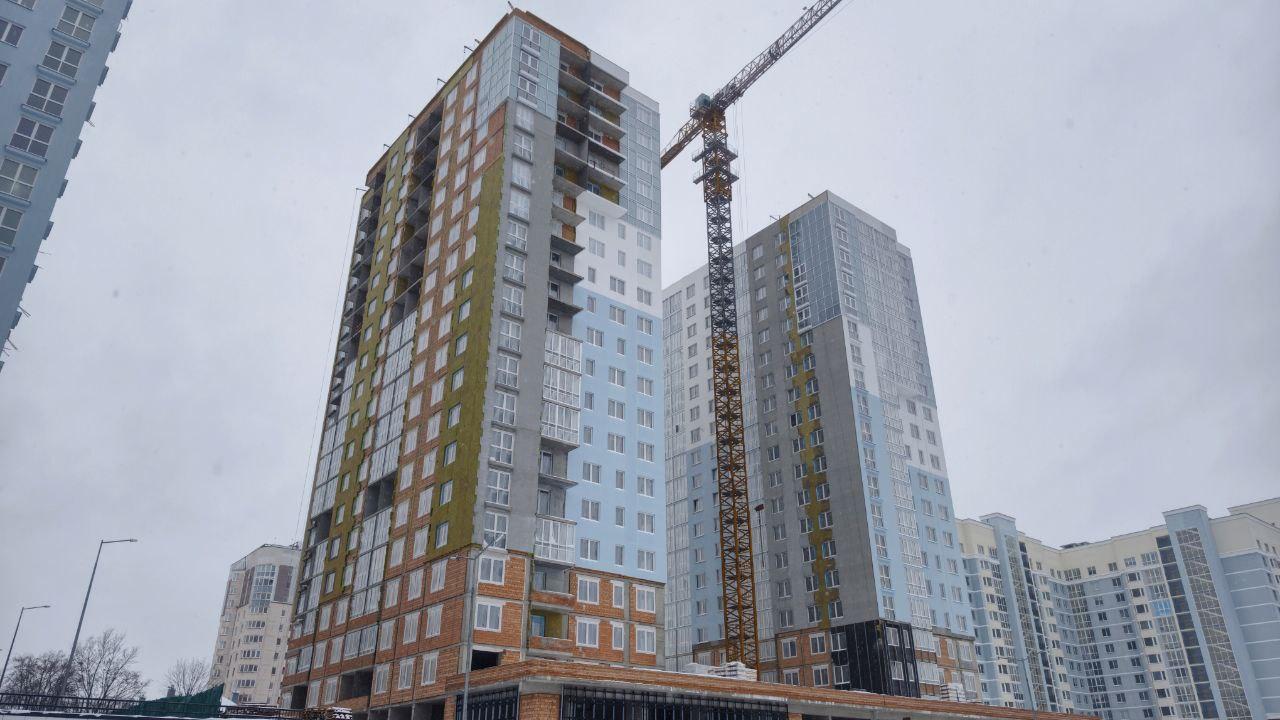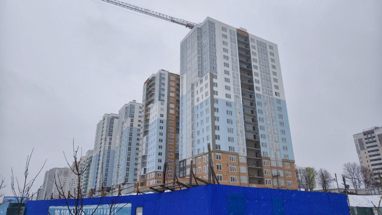 Завершен монтаж окон, монтаж остекления панорамных лоджий производится на уровне 10-11 этажей.